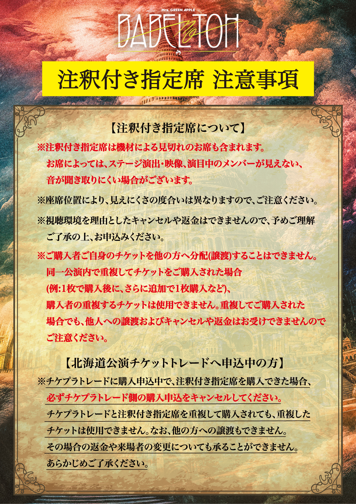 【Mrs. GREEN APPLE】11.01(土),02(日)札幌公演 注釈付き指定席販売のご案内